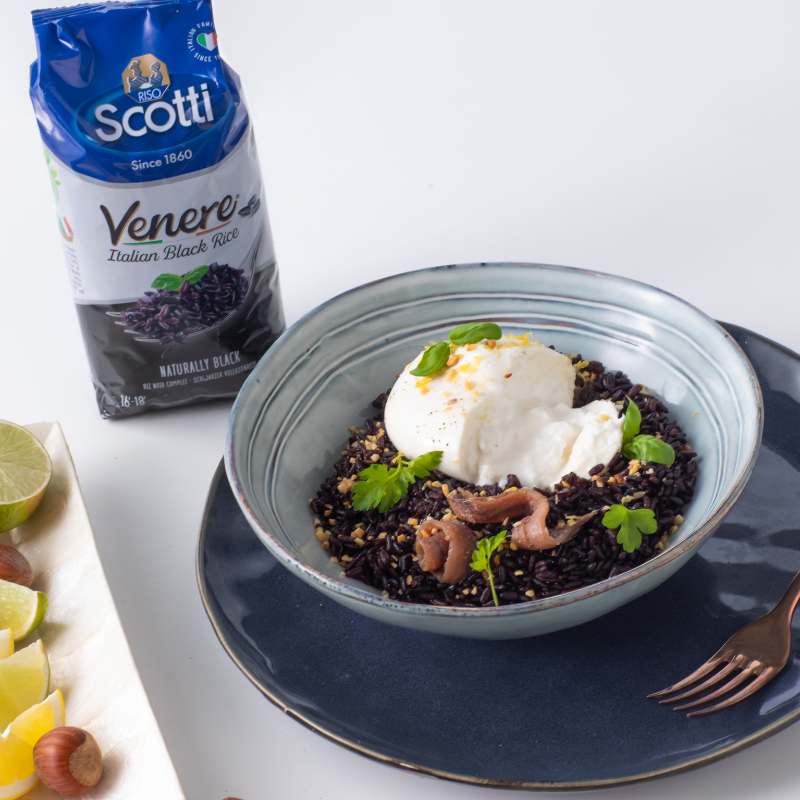 INGREDIENTS (SERVES 3) 160 g Riso Scotti’s Venere Rice